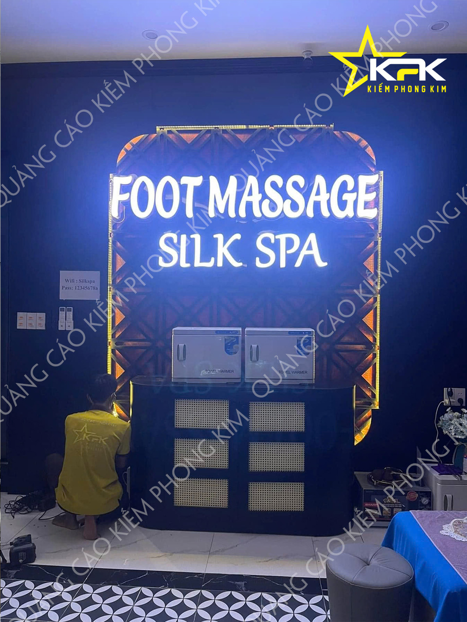 THI CÔNG BIỂN HIỆU ALU, CHỮ NỔI SÁNG ĐÈN HẮT CHÂN TẠI BÁCH NGỌC SPA
