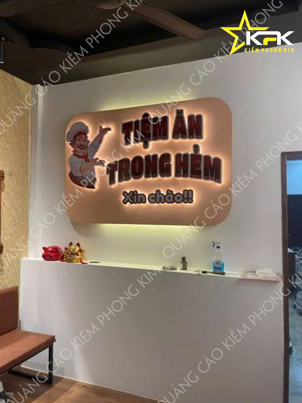 THI CÔNG LẮP ĐẶT BẢNG HIỆU SỬ DỤNG VẬT LIỆU KIM LOẠI 3D VÀ CHỮ INOX SÁNG ĐÈN HẮT CHÂN